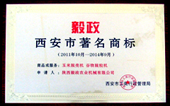 為了貫徹落實(shí)《西安市人民政府關(guān)于推進(jìn)商標(biāo)戰(zhàn)略的實(shí)施意見》,根據(jù)《西安市著名商標(biāo)認(rèn)定與保護(hù)規(guī)定》,經(jīng)2011年10月9日西安市著名商標(biāo)認(rèn)定委員會全體會議審查通過、西安市工商行政管理局批準(zhǔn),認(rèn)定陜西毅政農(nóng)業(yè)機(jī)械有限公司“毅政”商標(biāo)為西安市著名商標(biāo)。